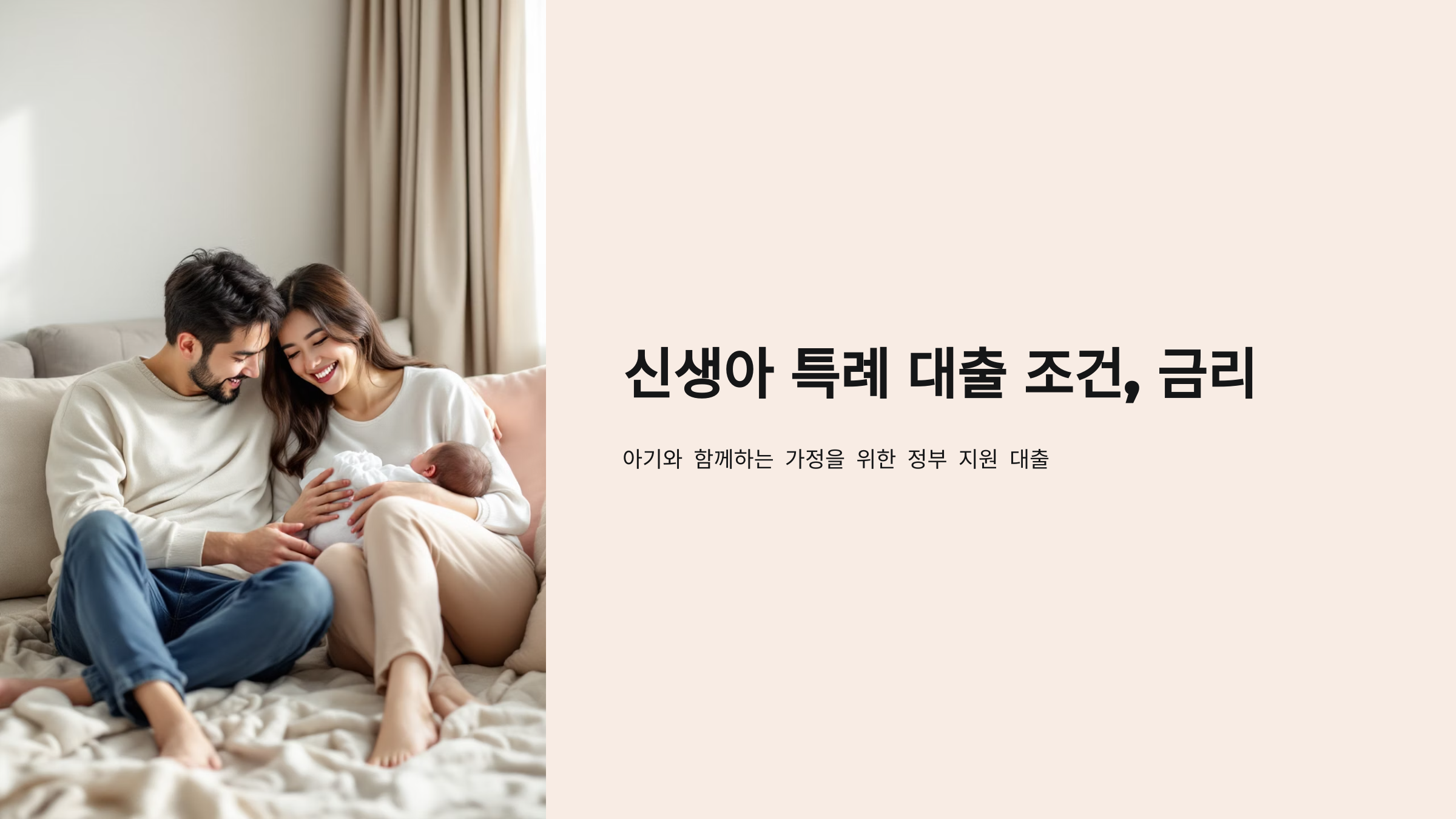 사랑스러운 아기와 함께하는 가정을 위한 신생아 특례 대출을 자세히 파헤쳐 볼 거예요. 어떤 가정이 대출받을 자격이 되는지 조건부터, 얼마나 금리가 낮은지, 대출은 얼마까지 가능한지( 한도 ), 신청은 어떻게 하는지까지 모두 알려드릴게요. 복잡하게 느껴졌던 대출 이야기를 아주 쉽고 명확하게 설명해 드릴 테니 걱정 마세요! 이 글 하나면 신생아 특례 대출을 제대로 알고 똑똑하게 활용할 수 있을 거예요. 자, 그럼 시작해볼까요?